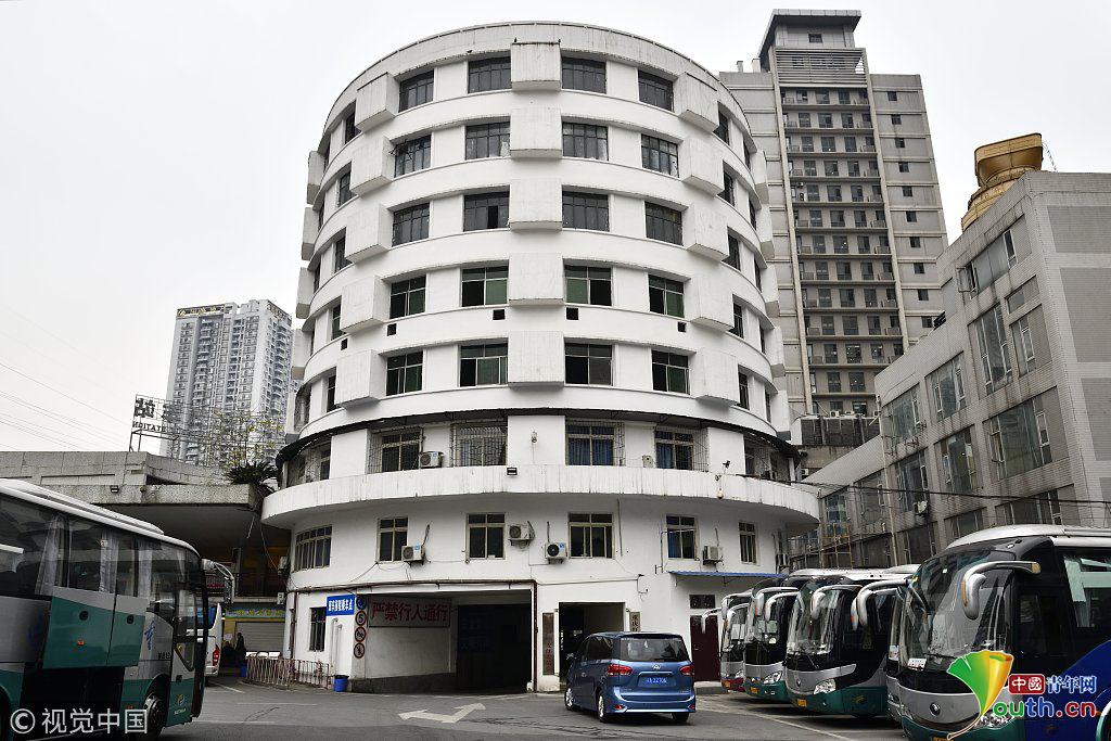2018年12月6日,重慶江北紅旗河溝汽車站內,有一棟獨特的八層圓環(huán)狀建筑,底層每天有不少進出站的客車通行。
