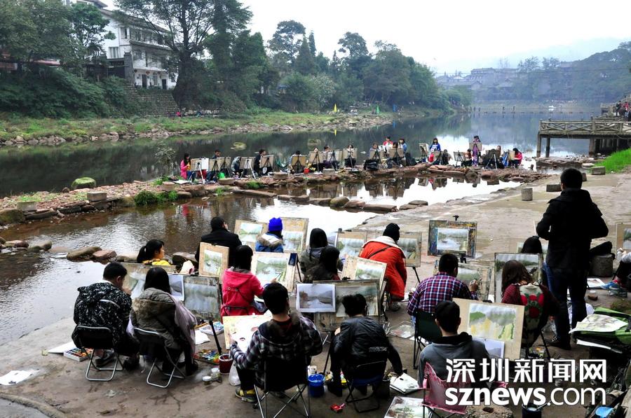 古鎮(zhèn)吸引很多寫生的學(xué)生 李 仁奇 攝