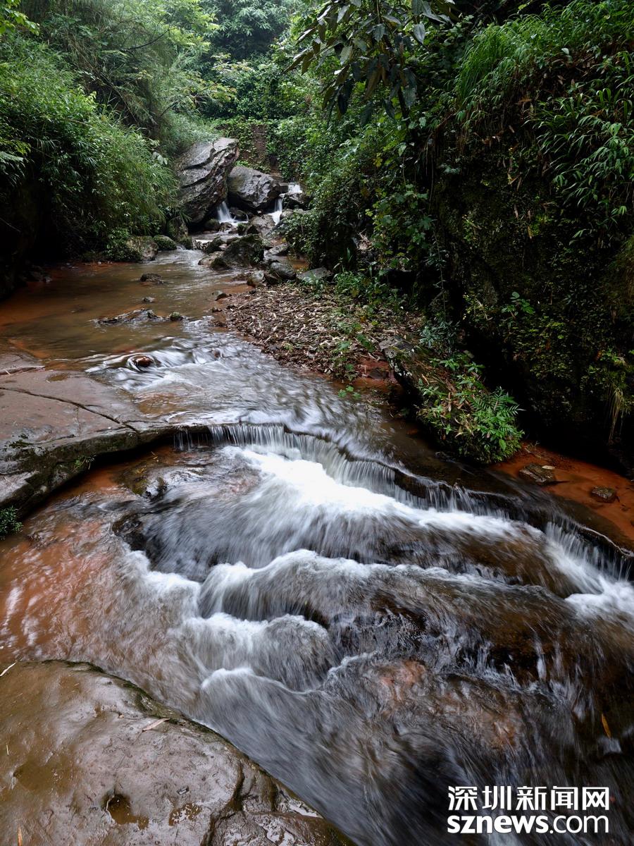丹霞地貌與大面積古植被和2359 種動(dòng)植物、珍稀瀕危動(dòng)植物共存,是赤水丹霞最獨(dú)特的特征。點(diǎn)綴在原始森林、竹海、桫欏之間,猶如紅寶石鑲嵌在綠洲之中,是世界罕見(jiàn)的綠色丹霞景觀。李仁奇 攝