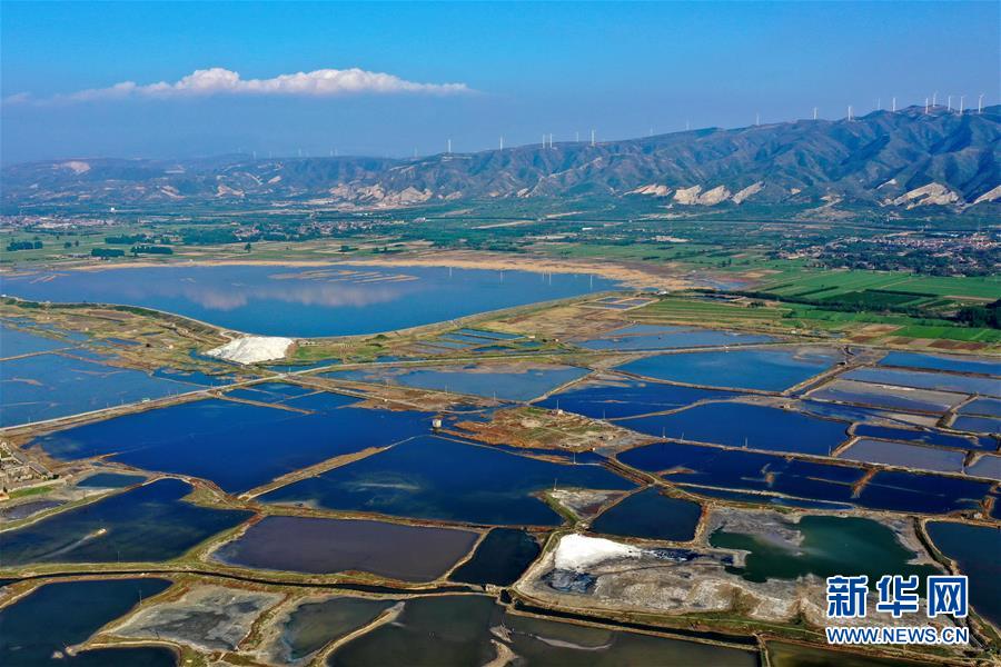 這是4月23日無(wú)人機(jī)拍攝的山西運(yùn)城鹽湖。新華社記者 曹陽(yáng) 攝