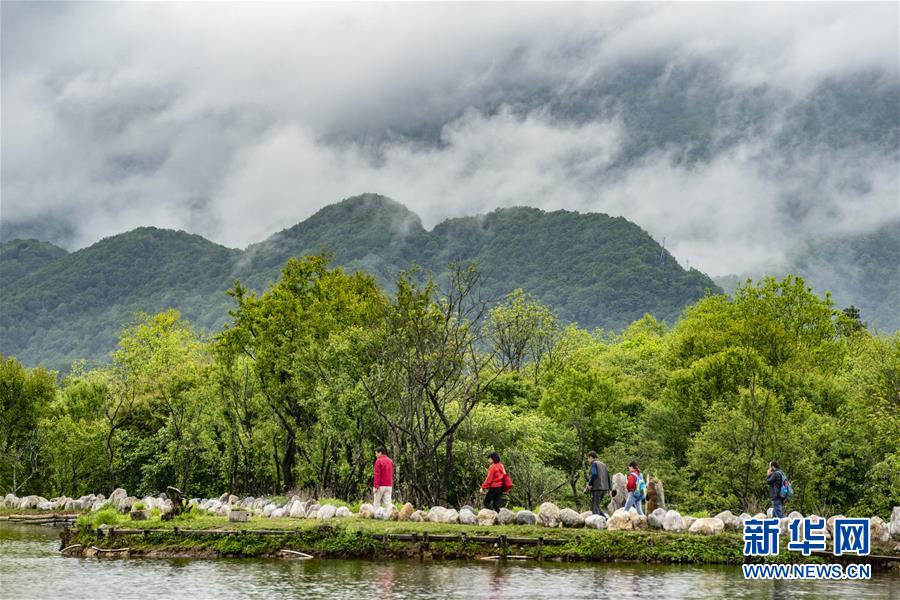 游客在神農(nóng)架國家公園大九湖游覽(2018年5月18日攝)。 新華社記者 杜華舉 攝