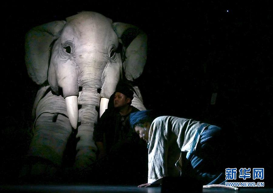 5月15日在上海美琪大戲院拍攝的新版大型人偶舞臺劇《最后一頭戰(zhàn)象》劇照。 當(dāng)日,作為第12屆中國藝術(shù)節(jié)的參演劇目,大型人偶舞臺劇《最后一頭戰(zhàn)象》在經(jīng)過4次硬件技術(shù)升級和故事修改后亮相上海美琪大戲院。 新華社記者 任瓏 攝