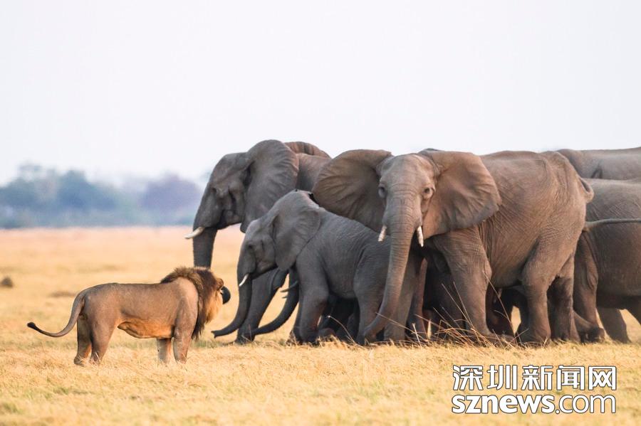 英國攝影師詹姆斯(James Gifford)在博茨瓦納喬貝國家公園拍到一群獅子獵食大象的精彩畫面。在詹姆斯的鏡頭下,一頭母獅跳到了一頭小象的背上想要將其拿下,但僅憑一己之力又不能做到。但當(dāng)母獅的后援抵達時,象群也趕到了現(xiàn)場。最終,小象回到了象群中獲得庇護,而獅群也不得不悻悻離去。