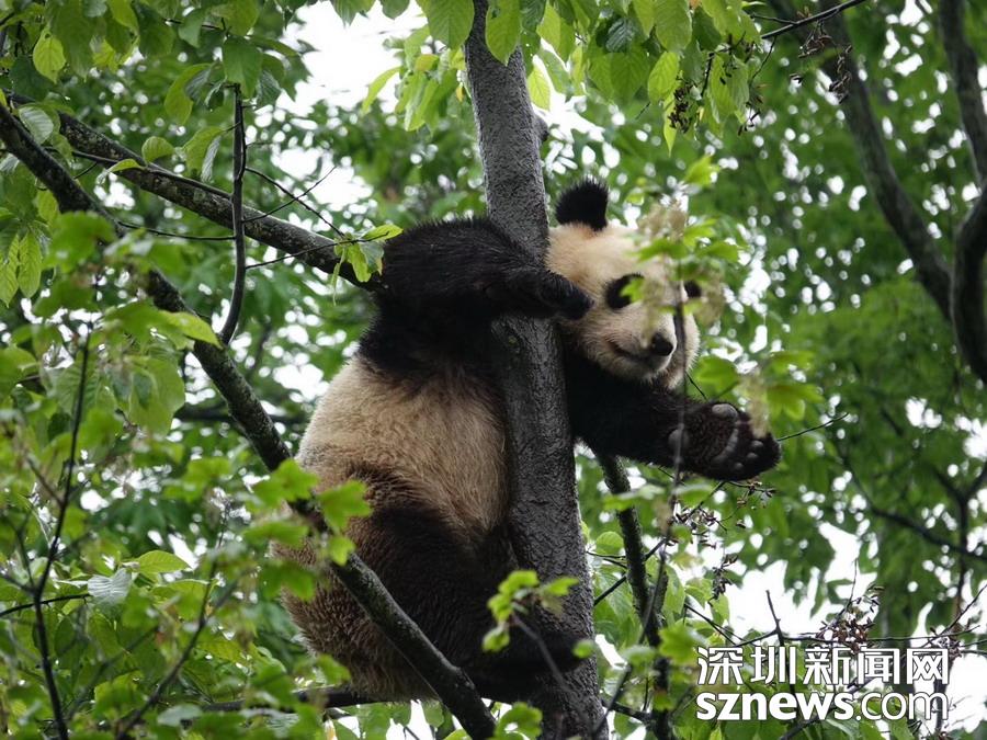 5月25日在中國(guó)大熊貓保護(hù)研究中心臥龍神樹坪基地的“熊貓幼兒園”內(nèi)拍攝的大熊貓。