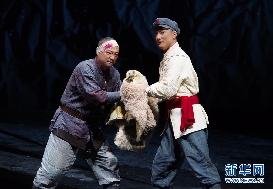 5月27日,演員在上海美琪大戲院表演現(xiàn)代京劇《紅軍故事》 。新華社記者 任瓏 攝