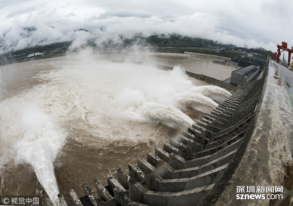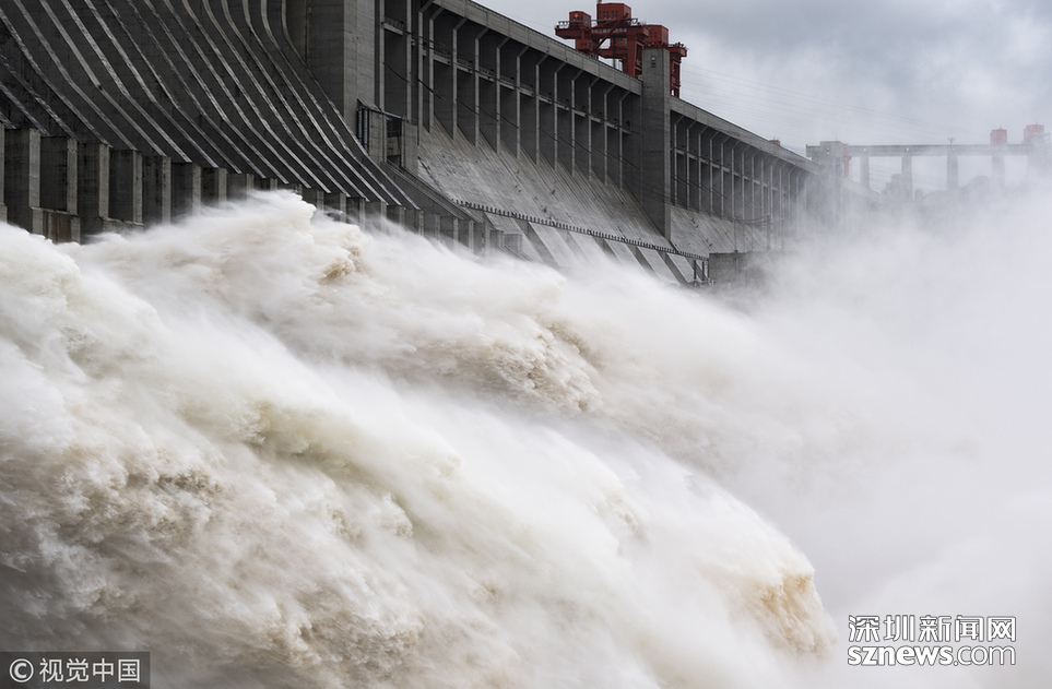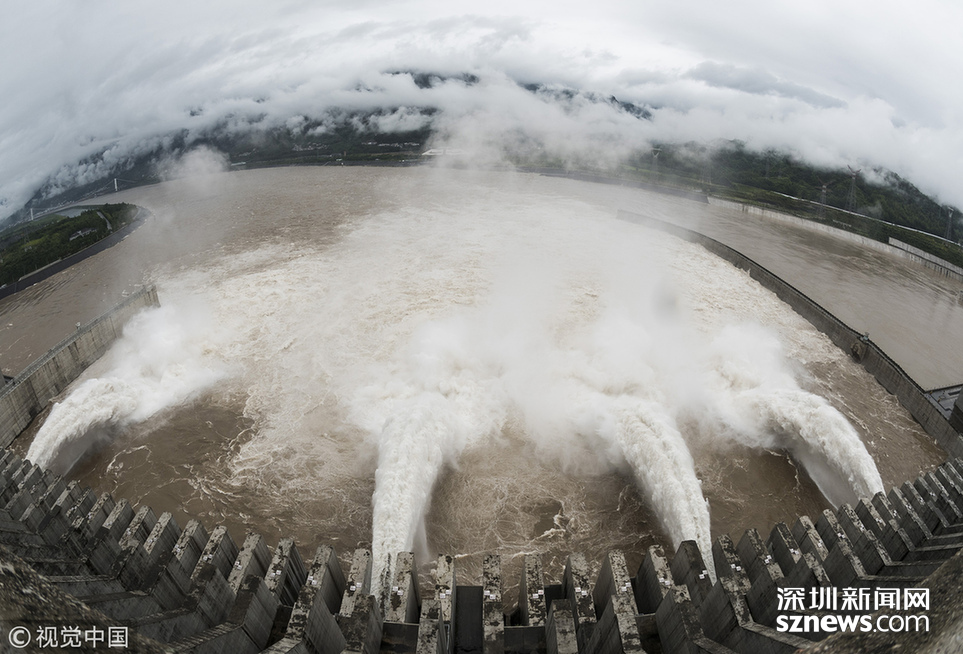 深圳新聞網(wǎng)訊  2018年7月5日,三峽大壩今年首次開閘泄洪。當(dāng)天,三峽大壩開啟5個(gè)泄洪孔下泄洪水,至中午12點(diǎn)左右減至2個(gè)。