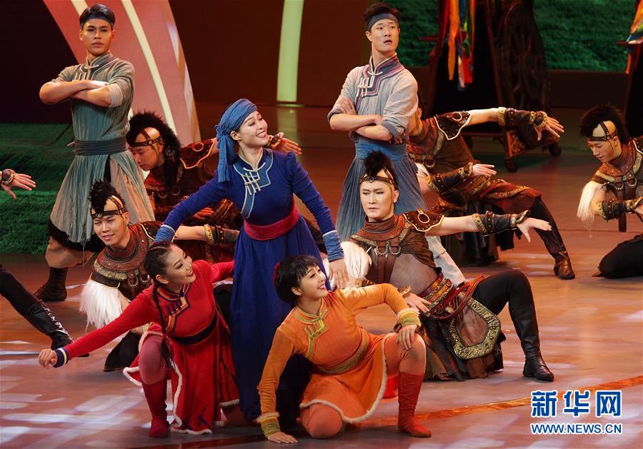 6月2日,內蒙古藝術學院演員在第十二屆中國藝術節(jié)閉幕式上匯報演出獲得文華大獎的舞劇《草原英雄小姐妹》選段。 新華社記者 任瓏 攝