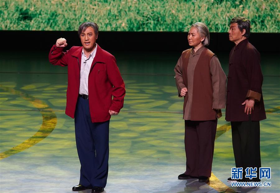 6月2日,演員在第十二屆中國藝術節(jié)閉幕式上匯報演出獲得文華大獎的河北梆子《李保國》選段。 新華社記者 任瓏 攝