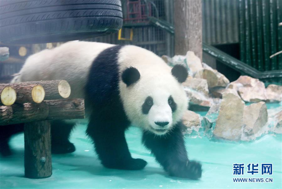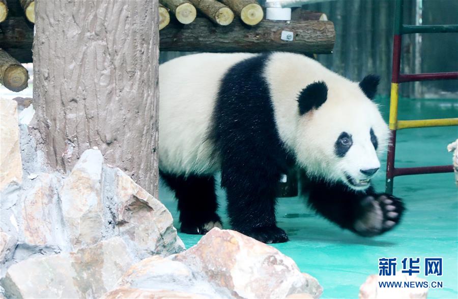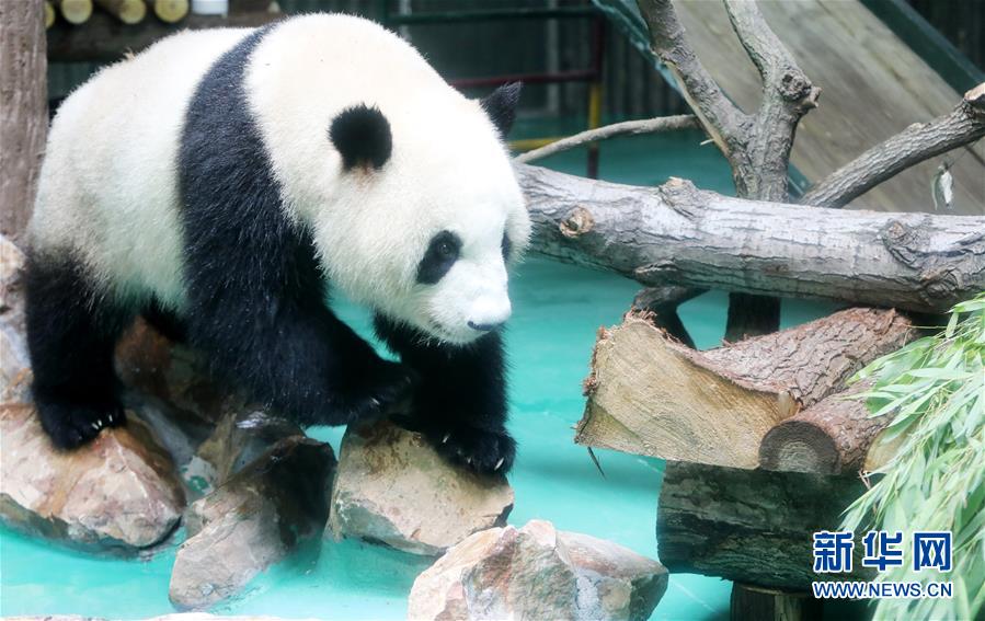 6月18日,大熊貓“星光”在裝修一新的大熊貓館內(nèi)散步。 當日,來自四川的大熊貓兄弟“和風”與“星光”飛抵上海,正式開始了在上海動物園為期三年的生活。為迎接這對“風光兄弟”,上海動物園將原有的大熊貓館擴建并裝修一新,空調(diào)、水池、游樂場以及竹葉儲存間等配置齊全。 新華社記者 方喆 攝