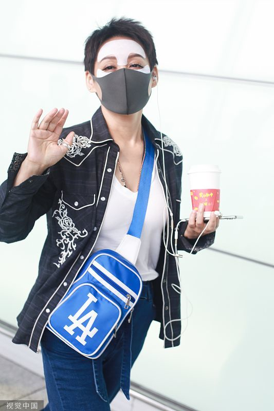 2019年6月19日,北京,寧靜現(xiàn)身機場。她穿敷面膜亮相短發(fā)干練個性灑脫,戴口罩對鏡揮手大方任拍。
