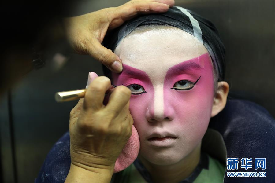 粵劇小演員陸瑞徽在畫經(jīng)典“紅白臉”妝容(6月8日攝)。 聲輝粵劇推廣協(xié)會成立于2003年,是香港重要粵劇藝術(shù)團(tuán)體之一,致力于向青少年推廣粵劇。協(xié)會目前有兩個(gè)初班,3個(gè)中班,一個(gè)青少年班?;泟∮址Q“廣東大戲”,表演技藝包括“唱做念打”,即唱功、身段、臺詞、武打,主要流行于廣東、廣西和香港、澳門等地區(qū)。2009年,粵劇被列入聯(lián)合國教科文組織人類非物質(zhì)文化遺產(chǎn)代表作名錄,今年正逢十周年。 新華社記者 吳曉初 攝