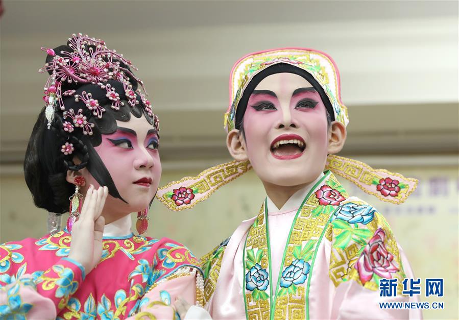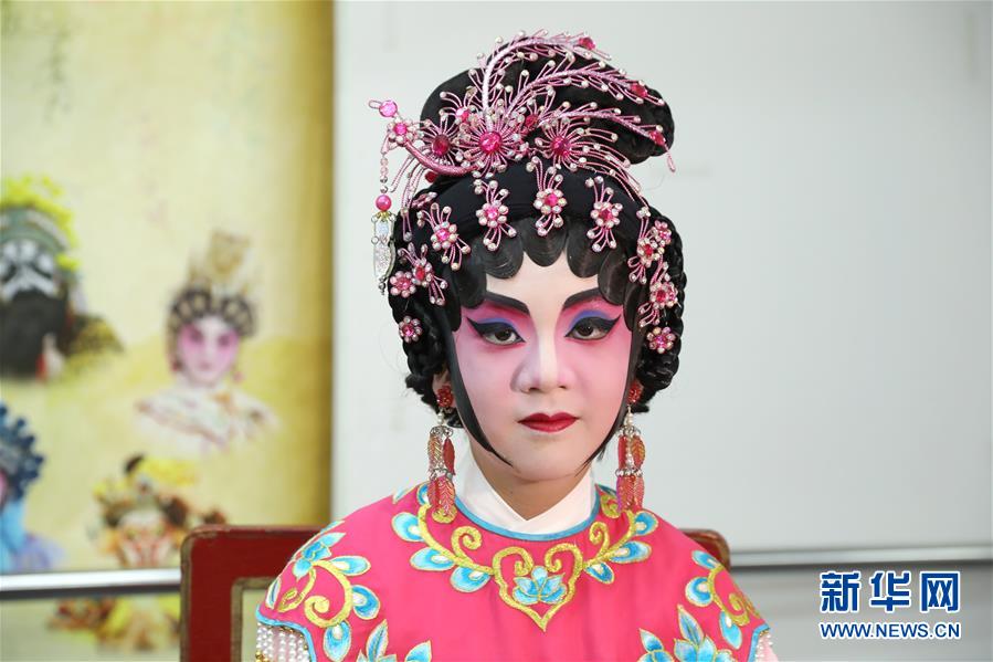 粵劇小演員陸瑞徽在準(zhǔn)備折子戲《艷曲醉周郎》的表演(6月8日攝)。 聲輝粵劇推廣協(xié)會成立于2003年,是香港重要粵劇藝術(shù)團(tuán)體之一,致力于向青少年推廣粵劇。協(xié)會目前有兩個(gè)初班,3個(gè)中班,一個(gè)青少年班?;泟∮址Q“廣東大戲”,表演技藝包括“唱做念打”,即唱功、身段、臺詞、武打,主要流行于廣東、廣西和香港、澳門等地區(qū)。2009年,粵劇被列入聯(lián)合國教科文組織人類非物質(zhì)文化遺產(chǎn)代表作名錄,今年正逢十周年。 新華社記者 吳曉初 攝