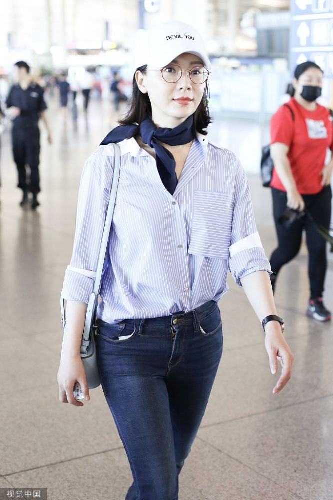 2019年6月30日,北京,陳數(shù)亮相機(jī)場(chǎng),她身穿條紋襯衫搭配藍(lán)色方巾完美詮釋知性美,簡(jiǎn)單造型非常耐看,已經(jīng)42歲的她皮膚也是亮白嫩滑,堪稱(chēng)凍齡美人了。