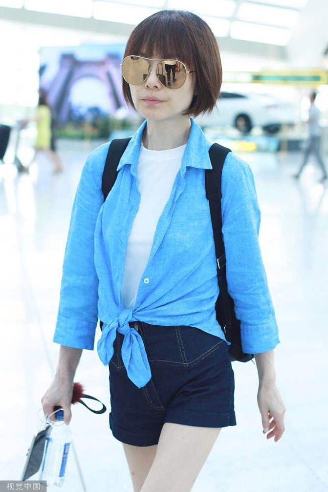 2019年5月25日,北京,魯豫現(xiàn)身機(jī)場。她梳著齊耳短發(fā)氣質(zhì)清爽干練,穿藍(lán)色襯衫內(nèi)搭白色t恤,夏日清涼氣息撲面而來。