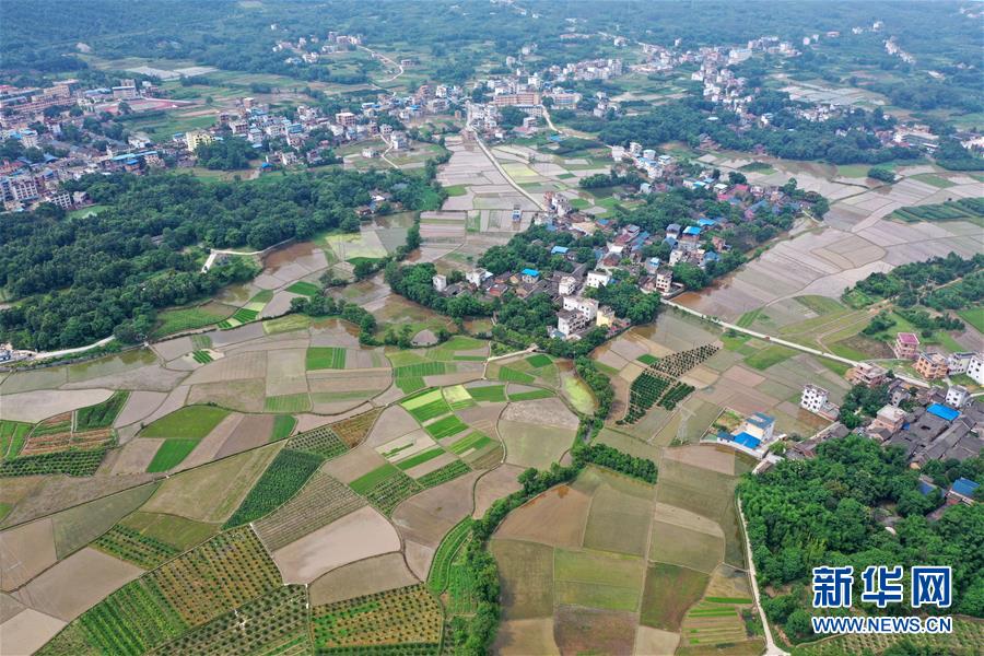 這是廣西全州縣鳳凰鎮(zhèn)鳳凰嘴渡口附近的田園(6月29日無(wú)人機(jī)拍攝)。 新華社記者 陸波岸 攝