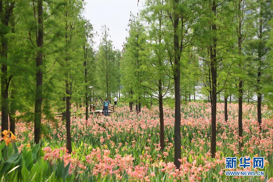 人們在廣東佛山東平河濱河濕地景觀帶游覽(4月9日攝)。  新華社記者 梁旭 攝