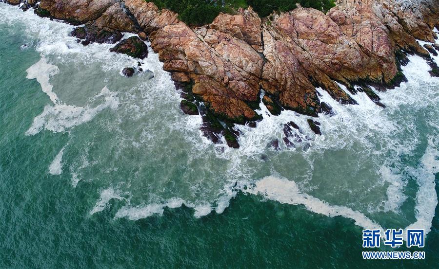 這是廣東唯一海島縣——南澳島海濱一角(2018年7月24日無人機(jī)拍攝)。  新華社記者 劉大偉 攝