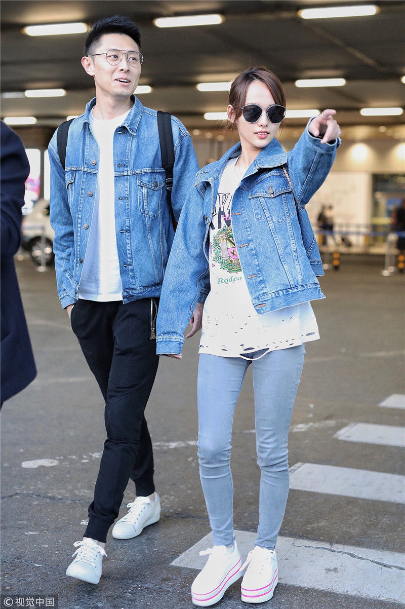 張嘉倪采訪惹爭議后與老公穿情侶裝秀恩愛