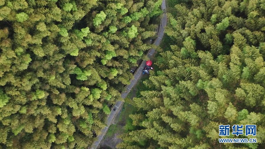 8月3日,游客行走在木坑竹海景區(qū)的小路上(無人機拍攝)。夏日,安徽省黃山市黟縣的木坑竹海景區(qū)風景優(yōu)美,吸引不少游客前來休閑避暑。新華社記者張端攝