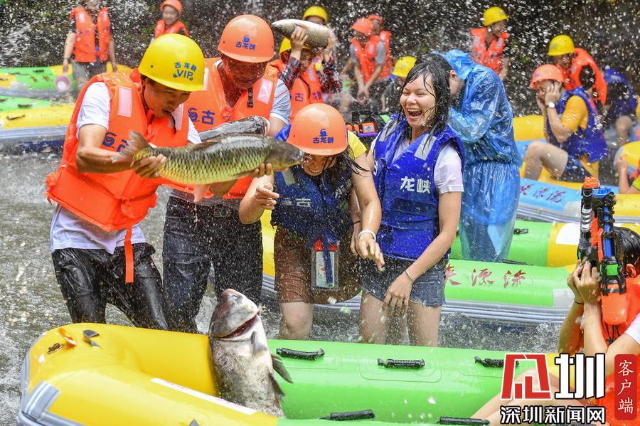 “韋帕”剛登陸廣東,清遠(yuǎn)古龍峽漂流景區(qū)就開始泄洪,上萬(wàn)斤水庫(kù)大魚隨著泄洪道“越獄”,引來(lái)上千名游客下艇捕魚,漂流河道上演了幾個(gè)小時(shí)的“人魚”大戰(zhàn),有的捕魚高手竟然捉了一漂流艇的魚回家。