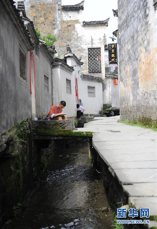 4月24日,繪畫愛好者在西遞風景區(qū)寫生。近日,隨著氣溫升高,位于安徽省黟縣的古村落西遞和宏村春意盎然,景色如畫。大批繪畫愛好者前來寫生,用畫筆描繪古村春色。 新華社記者 張端 攝