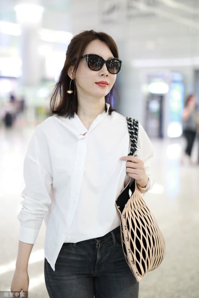 2019年8月4日,上海,陳數(shù)現(xiàn)身機場。她穿白色襯衫簡約裝扮依舊知性干練,架黑超拎漁網(wǎng)紋展露職場女性魅力,露淺笑溫柔甜美超迷人。