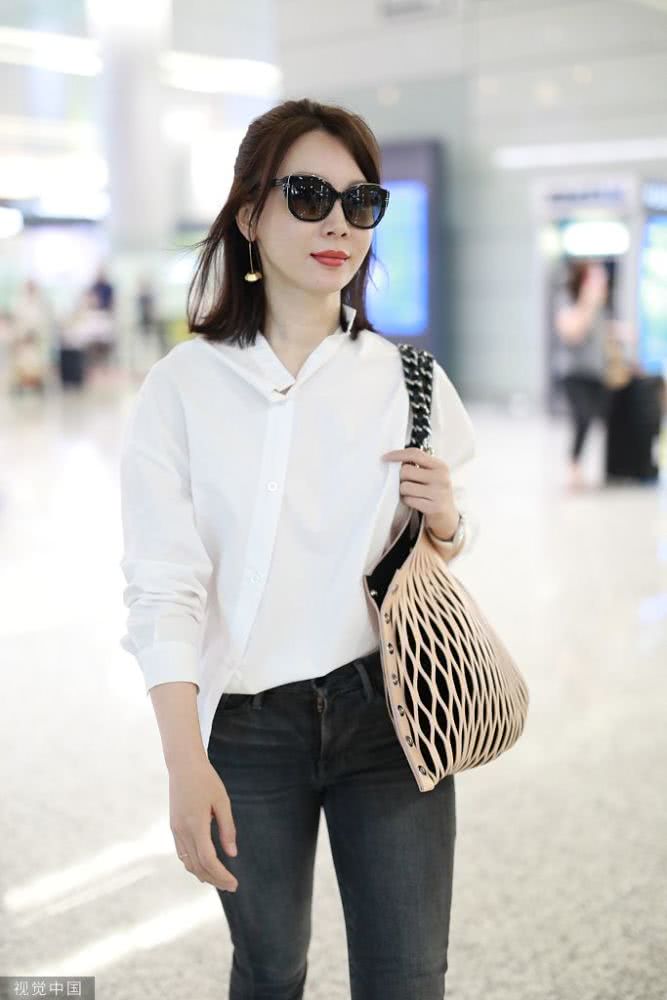 陳數(shù)穿白襯衫知性淺笑甜美迷人 架黑超拎漁網(wǎng)紋展職場(chǎng)女性魅力