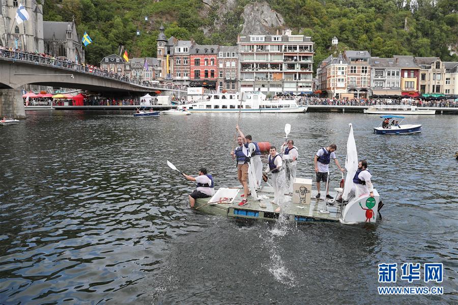 8月15日,在比利時(shí)南部小城迪南的默茲河上,人們參加“浴缸劃船節(jié)”的表演。