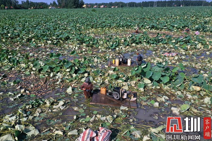 藕農(nóng)泥中“掘金”初秋時節(jié)采藕忙