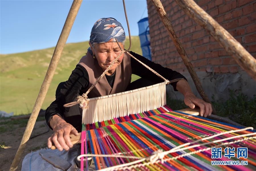 在新疆阿勒泰地區(qū)福海縣牧區(qū),牧民在制作氈房飾品(6月5日攝)。眼下,隨著新疆多地夏季牧場開放,阿勒泰地區(qū)的哈薩克族牧民又迎來了轉場季,他們趕牛羊,逐水草,游走在阿爾泰山間的牧道上,形成一道流動的風景。轉場時,牧民們攜子女及親屬騎馬趕著牲畜徐徐前行,駝隊或馬隊馱著全部家當,走到哪里,晚上就宿營在哪里。與傳統(tǒng)轉場方式不同,隨著生活條件的改善,一些牧民會雇汽車將家中的大件物品提前運送到目的地,轉場途中只需準備食物和簡易氈房便可以輕裝前行……新華社記者丁磊攝