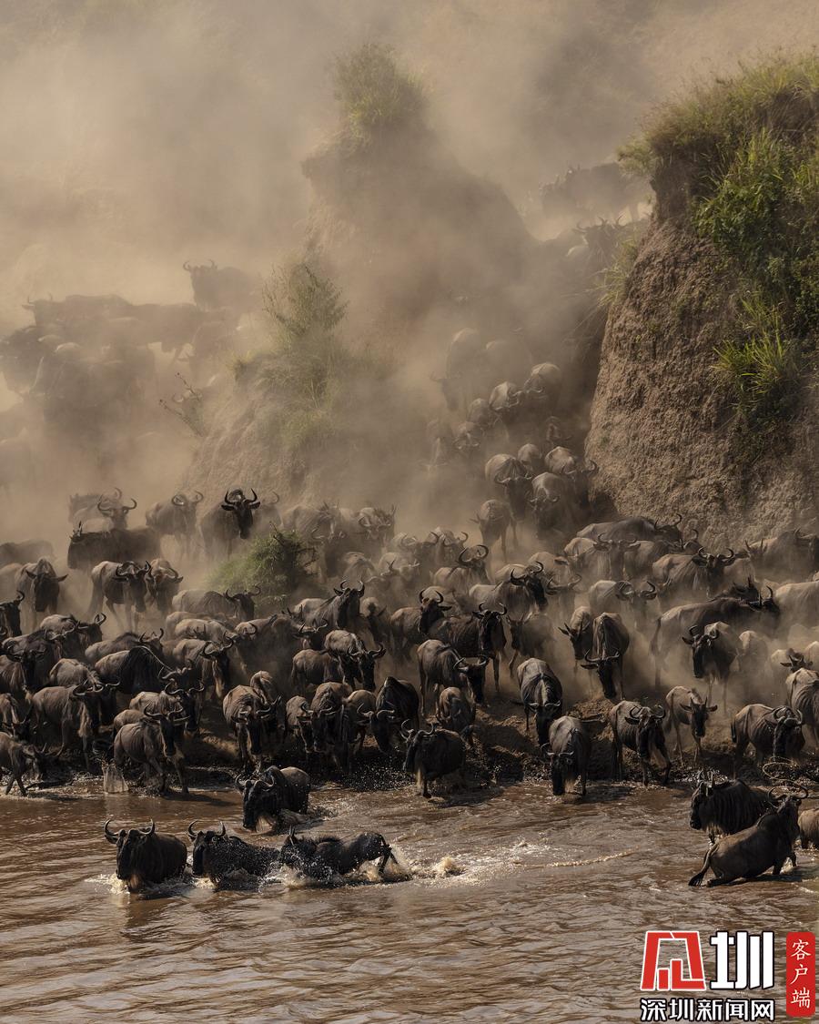 非洲角馬大軍集體遷徙,勇渡致命河流上演“生死時速”。