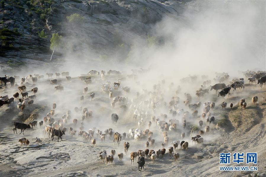 這是在新疆阿勒泰地區(qū)福??h牧區(qū)覓食的牛群(6月5日攝)。新華社記者丁磊攝