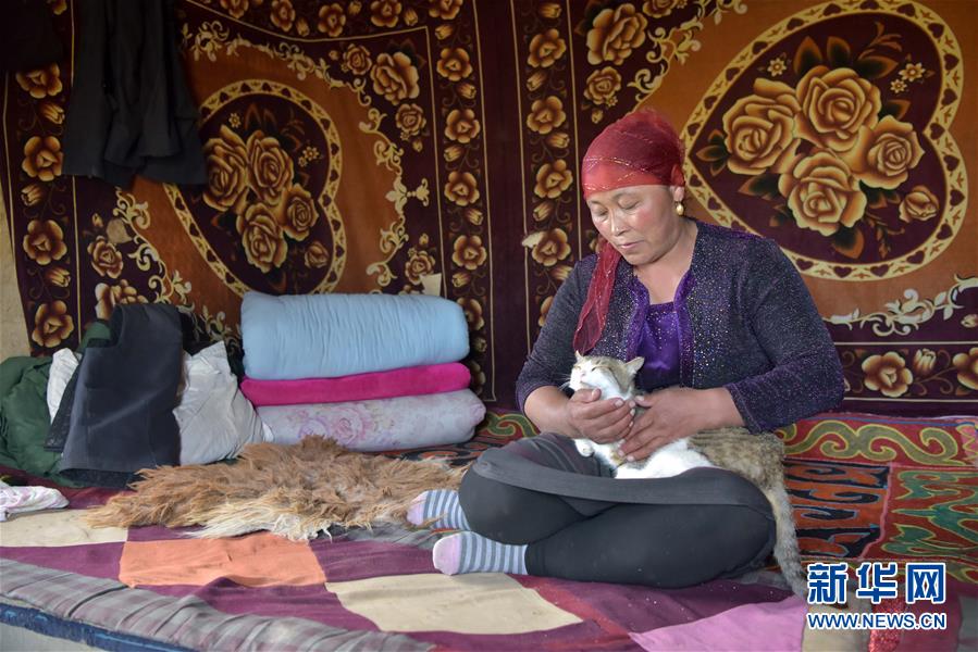 在新疆阿勒泰地區(qū)福??h,牧民在家中等待轉場運輸車輛(6月6日攝)。新華社記者丁磊攝