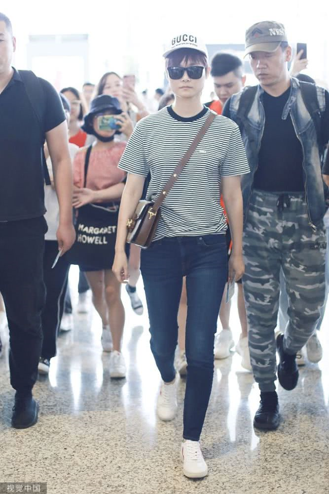 李宇春條紋裝扮現(xiàn)身機(jī)場(chǎng),青春活力,人氣爆棚