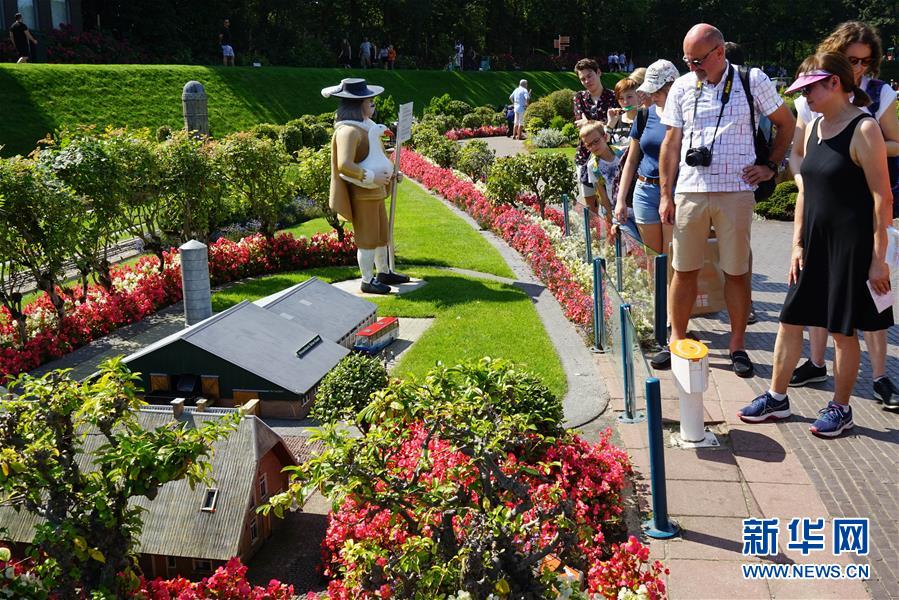 8月25日,在荷蘭海牙馬德羅丹公園,人們參觀微縮建筑。 新華社記者 林立平 攝