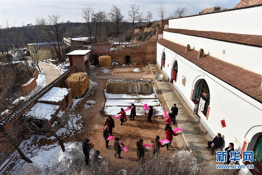 在武鄉(xiāng)縣大有鄉(xiāng)王莊溝村,村民們在排練節(jié)目(2月15日攝)。  新華社記者 詹彥 攝