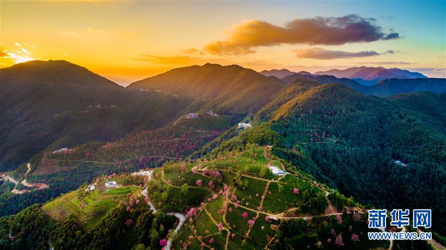 這是夕陽時分的云南南澗彝族自治縣無量山櫻花谷一景(2017年12月16日無人機(jī)拍攝)。 新華社記者胡超攝