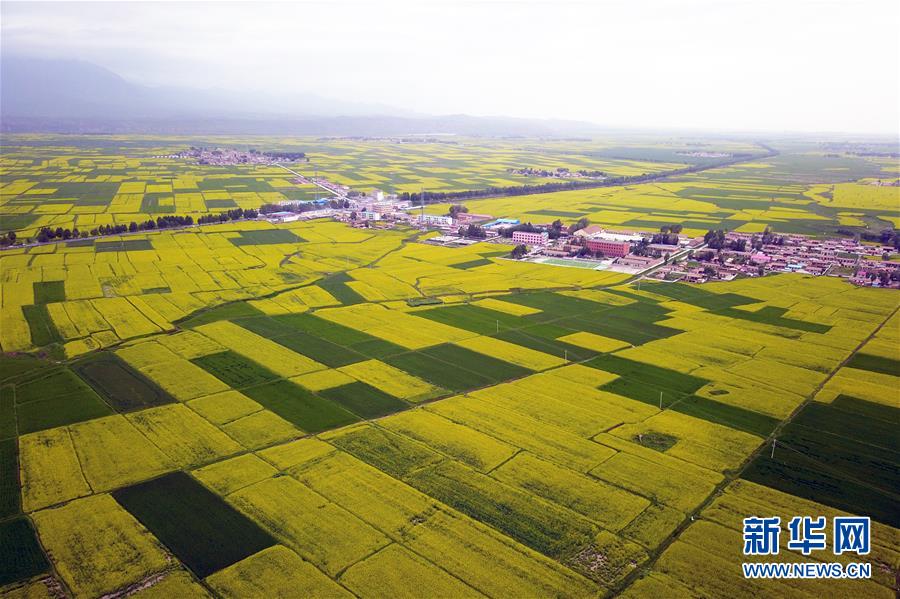 這是在甘肅省張掖市民樂縣扁都口生態(tài)休閑旅游區(qū)周邊田園拍攝的油菜花海(7月17日無人機(jī)拍攝)。新華社記者 范培珅 攝
