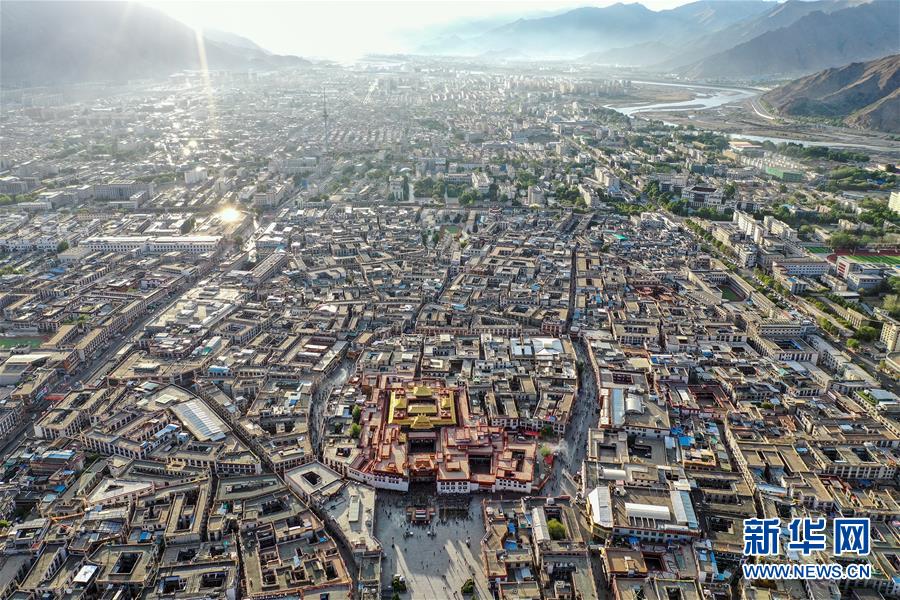 鳥(niǎo)瞰拉薩古城(8月10日無(wú)人機(jī)拍攝)。新華社記者 普布扎西 攝
