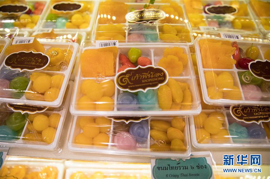 9月1日,店員在泰國曼谷著名的“九姐妹甜點(diǎn)”店整理貨架。
