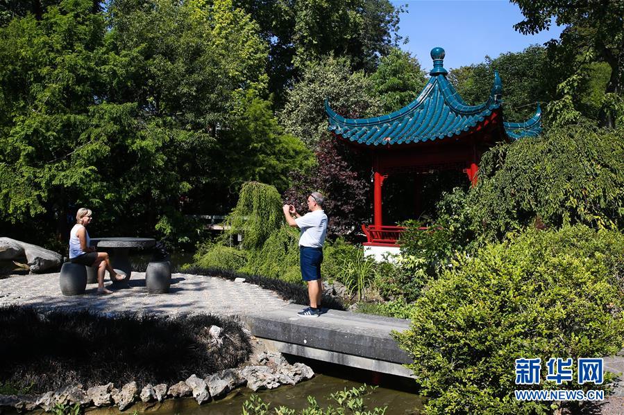 8月24日,在比利時(shí)布呂熱萊特市,游客參觀天堂動(dòng)物園的“中國園”。新華社記者鄭煥松攝