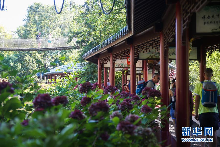 8月24日,在比利時(shí)布呂熱萊特市,游客參觀天堂動(dòng)物園的“中國(guó)園”中的一處長(zhǎng)廊。新華社記者 鄭煥松 攝