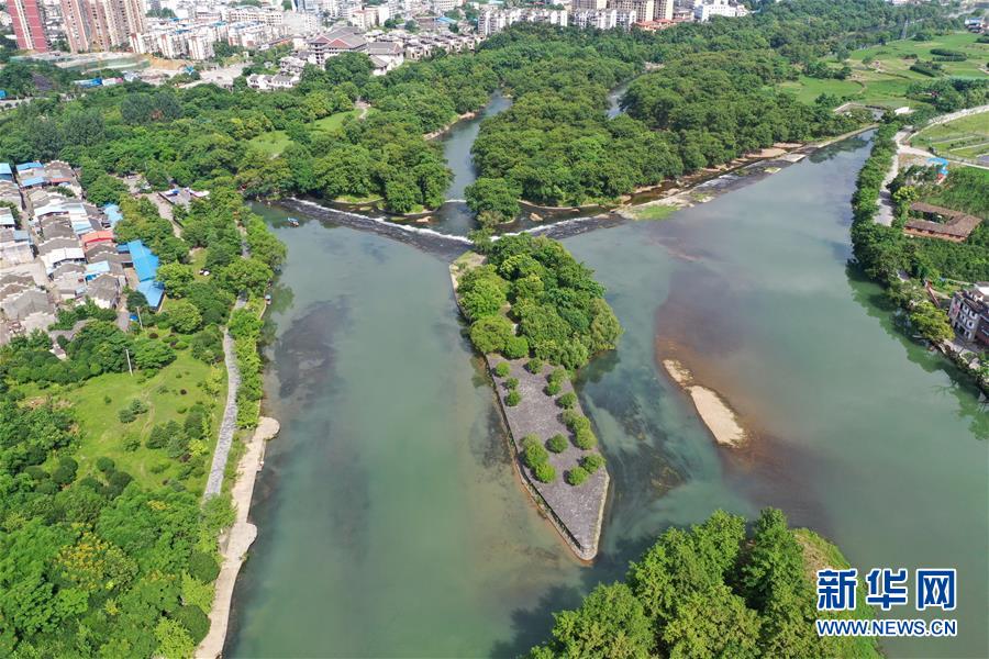 這是6月30日無人機拍攝的廣西興安縣靈渠。 位于廣西興安縣的靈渠是世界上保存最完整的古代水利工程之一,至今仍發(fā)揮著農(nóng)田灌溉、排洪泄洪作用。2018年,靈渠入選世界灌溉工程遺產(chǎn)名錄。 新華社記者 周華 攝
