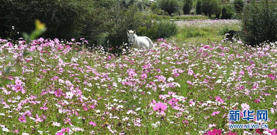 9月13日拍攝的尼木縣山谷間盛開的波斯菊。 新華社記者 晉美多吉 攝