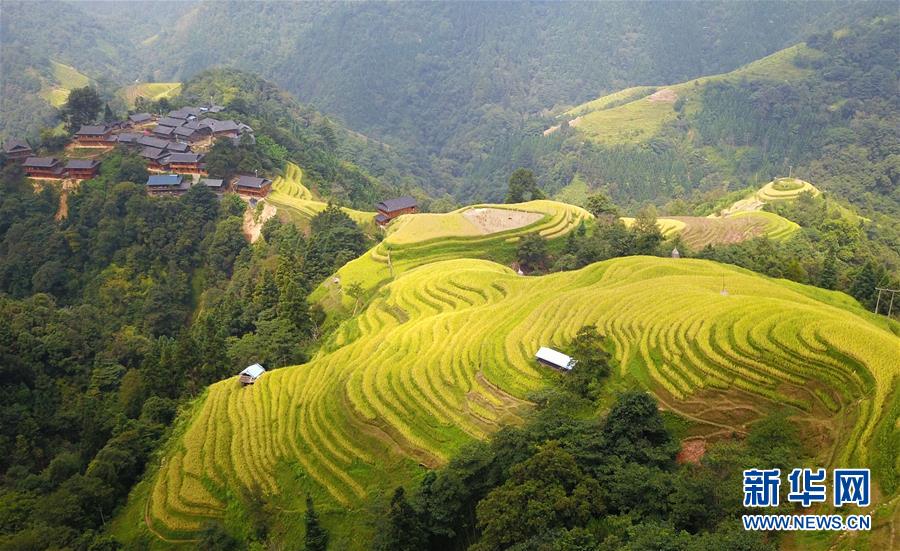 這是9月17日無(wú)人機(jī)拍攝的貴州省榕江縣計(jì)劃鄉(xiāng)計(jì)劃村陽(yáng)開苗寨梯田。新華社記者 楊文斌 攝