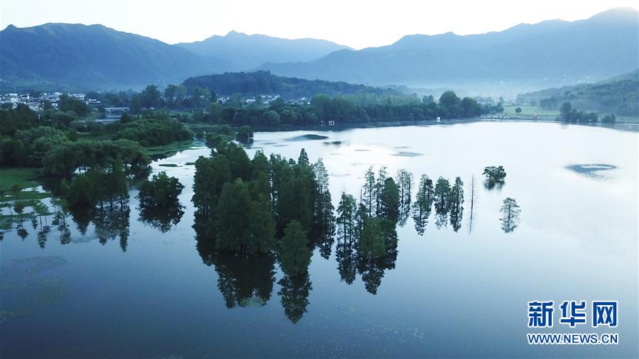 這是8月4日無人機拍攝的安徽黟縣宏村風景區(qū)月沼晨景。新華社記者張端攝