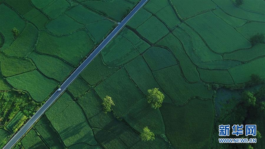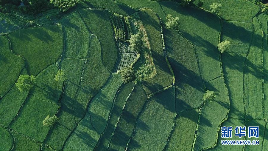 這是8月4日無人機拍攝的安徽黟縣宏村風景區(qū)附近的農田。新華社記者張端攝