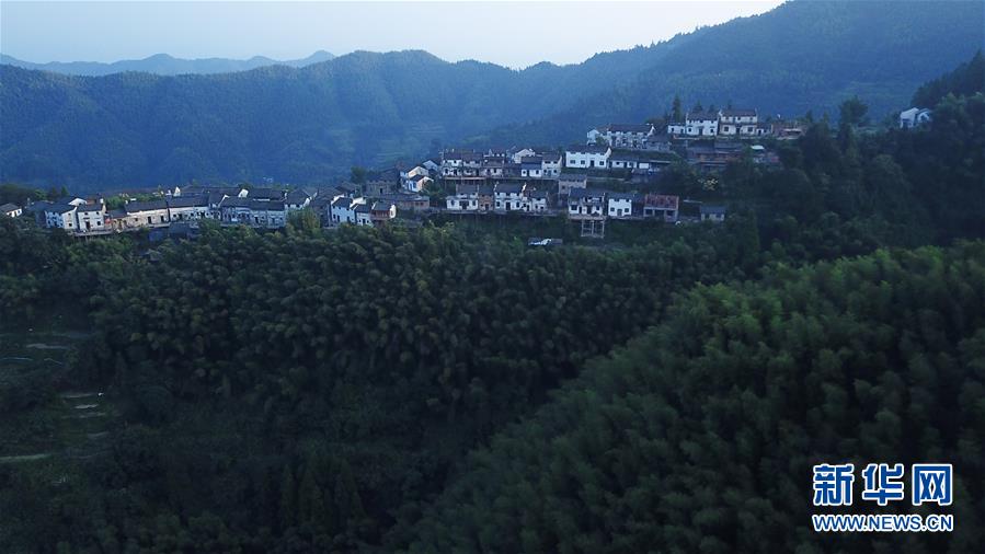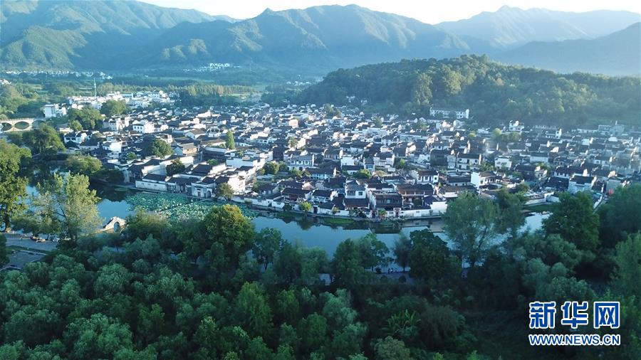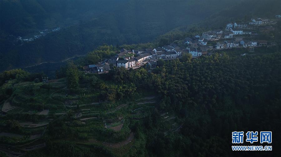 晨曦中的木梨硔村景色(9月18日無人機拍攝)。9月18日清晨,地處皖南山區(qū)的安徽省黃山市休寧縣木梨硔村沐浴在晨曦之中,靜謐祥和。新華社記者張端攝