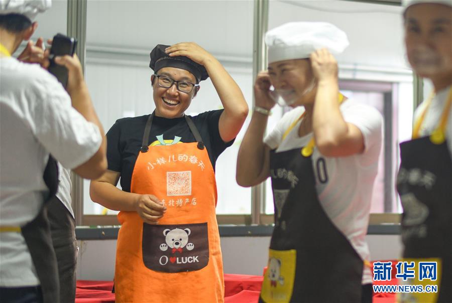 李琛璨(左二)與工人在生產(chǎn)車間準(zhǔn)備查看醬缸中的大醬發(fā)酵情況(8月29日攝)。 新華社記者 王松 攝