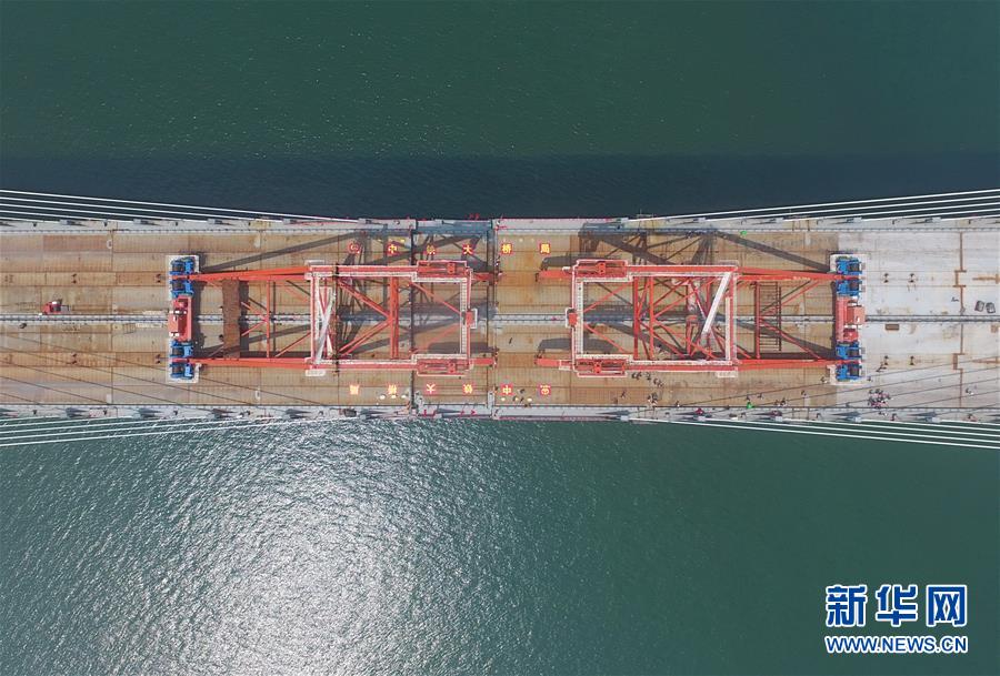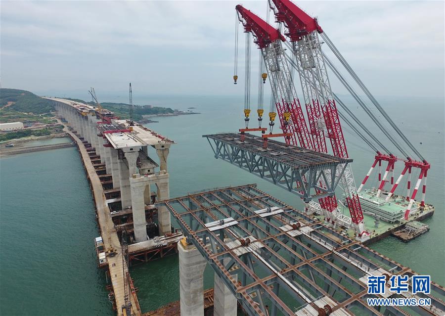 9月21日,平潭海峽公鐵大橋鼓嶼門航道橋的鋼桁梁在吊裝中(無人機(jī)拍攝)。9月25日上午,隨著一段長17米、重473噸的鋼桁梁被精確固定到位,總長16.34公里的平潭海峽公鐵大橋合龍貫通。平潭海峽公鐵大橋是福州至平潭鐵路控制性工程,也是“十三五”規(guī)劃中北京至臺(tái)灣高鐵的先期工程。大橋起于福州市長樂區(qū),“踏”過四座小島后抵達(dá)中國第五大島平潭,上層設(shè)計(jì)為時(shí)速100公里的六車道高速公路,下層為設(shè)計(jì)時(shí)速200公里的高鐵。據(jù)福建福平鐵路公司介紹,大橋計(jì)劃2020年正式通車。在六年建設(shè)過程中,平潭海峽公鐵大橋所應(yīng)用研發(fā)的多項(xiàng)技術(shù)、裝備創(chuàng)下國內(nèi)外紀(jì)錄。新華社記者林善傳攝